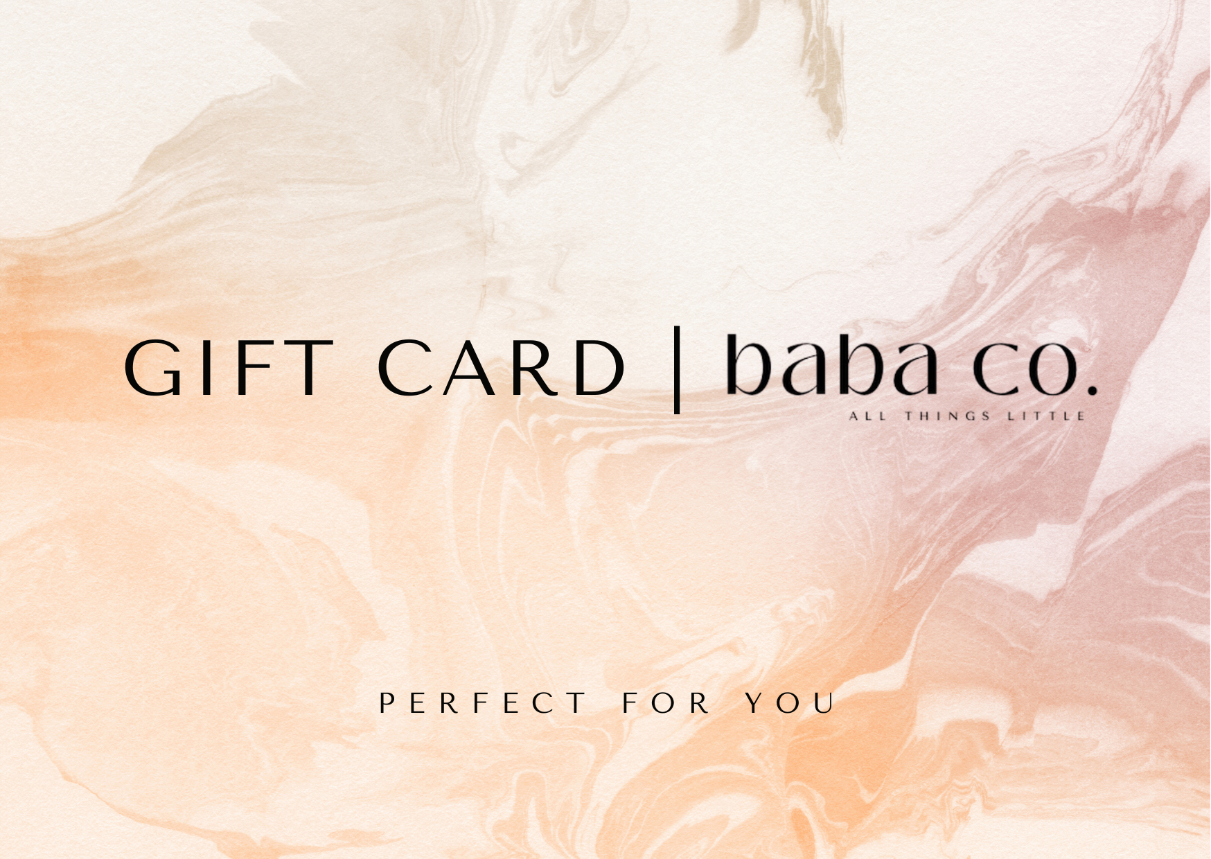 Not sure what to get? Let them choose with a baba co. Gift Card! Perfect for birthdays, baby showers, or just because—our gift cards are delivered instantly by email and can be used on any item in our store. No expiration date, no hidden fees—just endless possibilities.
