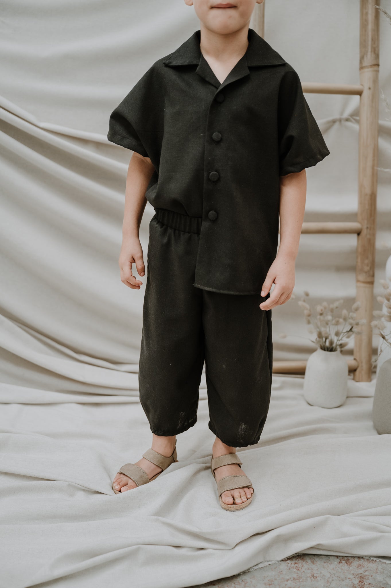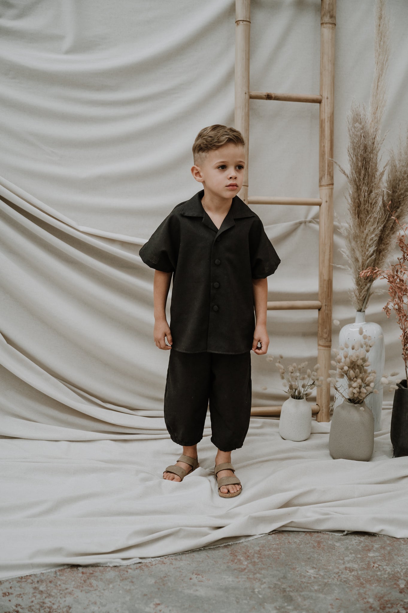 A classic in any closet. This shirt has a loose fit to llow your kid to still explore while wearing it. Perfect for a dressy event and can easily be paired with our Unisex Short or Tapered Pants.