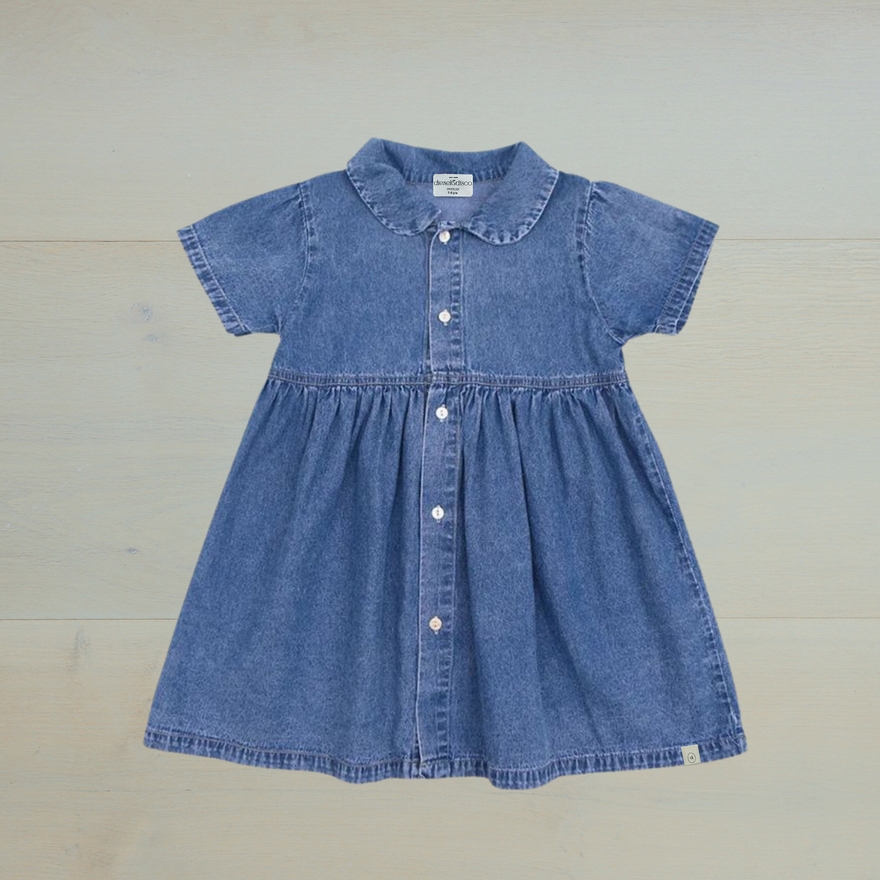 This stylish dress captures the effortless elegance of sunny days with its classic denim fabric and baggy fit.