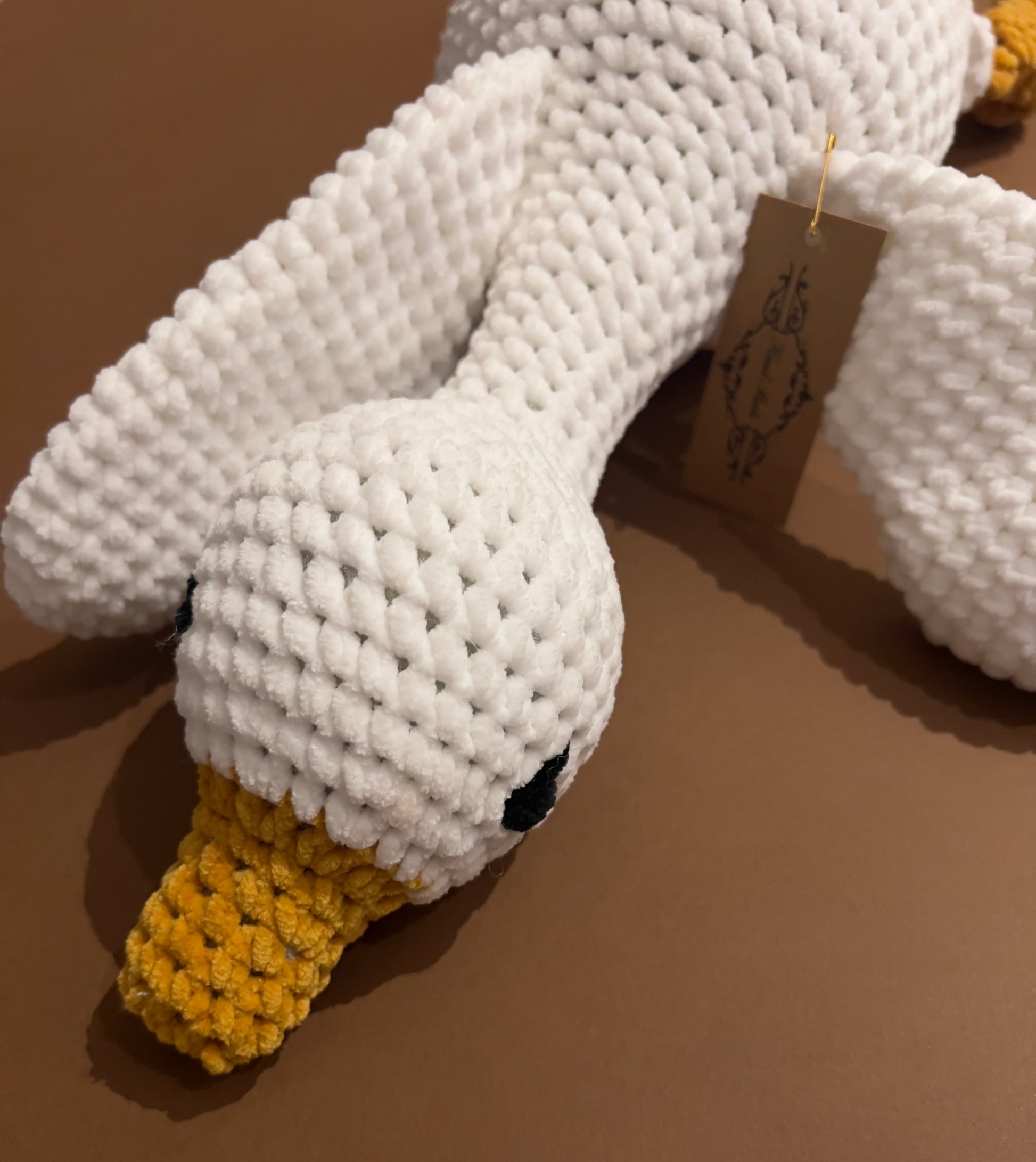 Gawie the Goose is as soft as he looks. Made with Plish yarn and about 20cm in height.