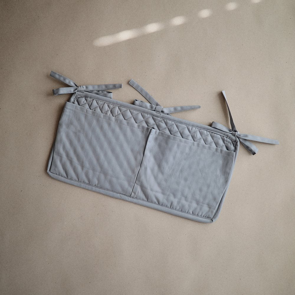 The elegant and multifunctional crib pocket made from 100% cotton is compatible with most cribs. It will help you organize baby’s necessary essentials such as diapers, wipes, teethers, and toys. You can easily fasten the crib pocket to crib bars, railings, or shelves with the 3 sets of attached ribbon ties.