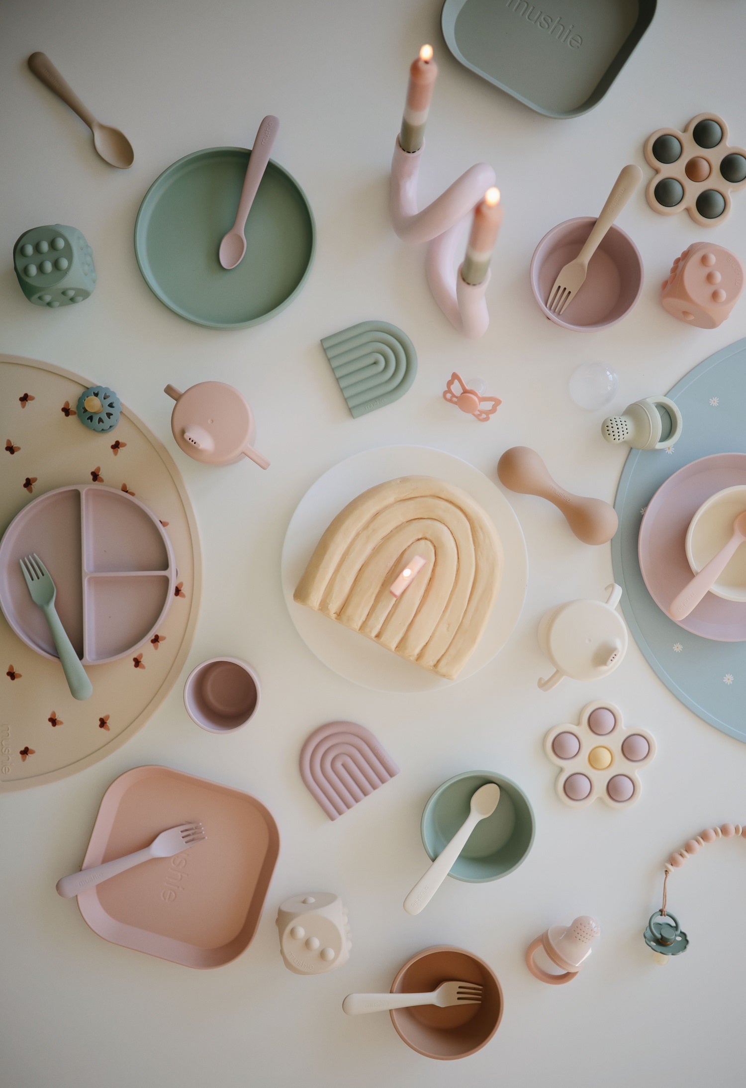 Make dinnertime stylish with round or square bowls from Mushie. With soft colors and clean design, the plastic dinnerware bowls are elegant and minimalistic – they fit right into every modern home. Combine the bowls with other dinnerware products in matching colors from Mushie.