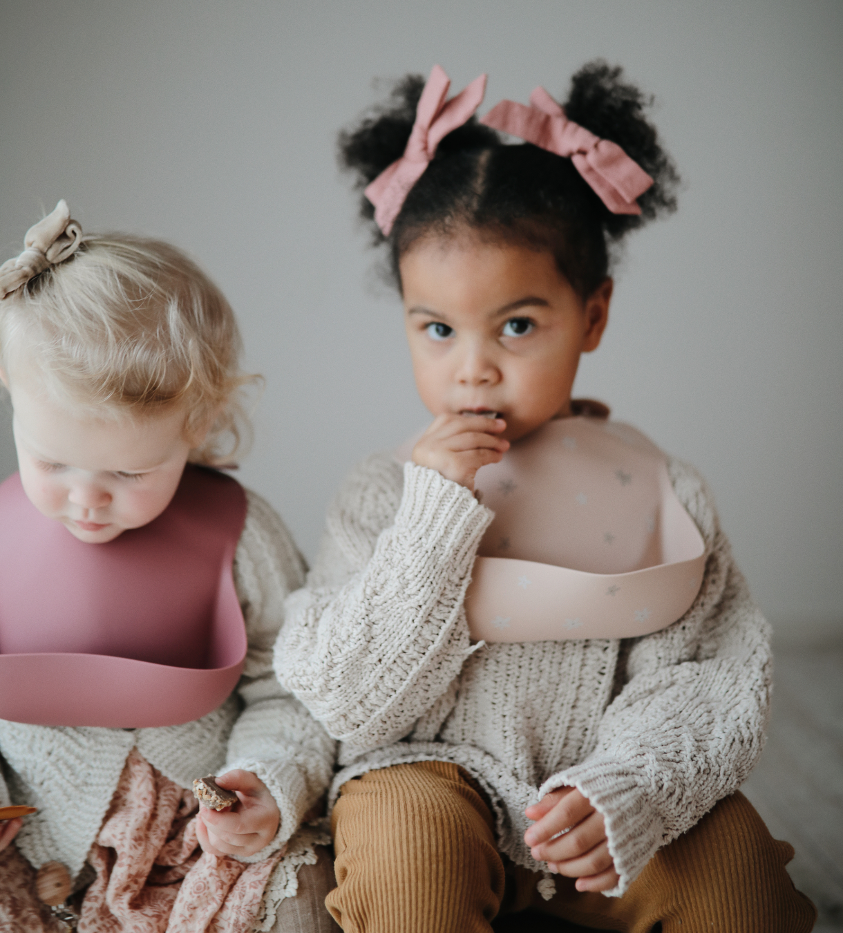 The collection of silicone bibs from Mushie is fun, timeless, and colorful in various designs. Find the style that fits your taste and style.