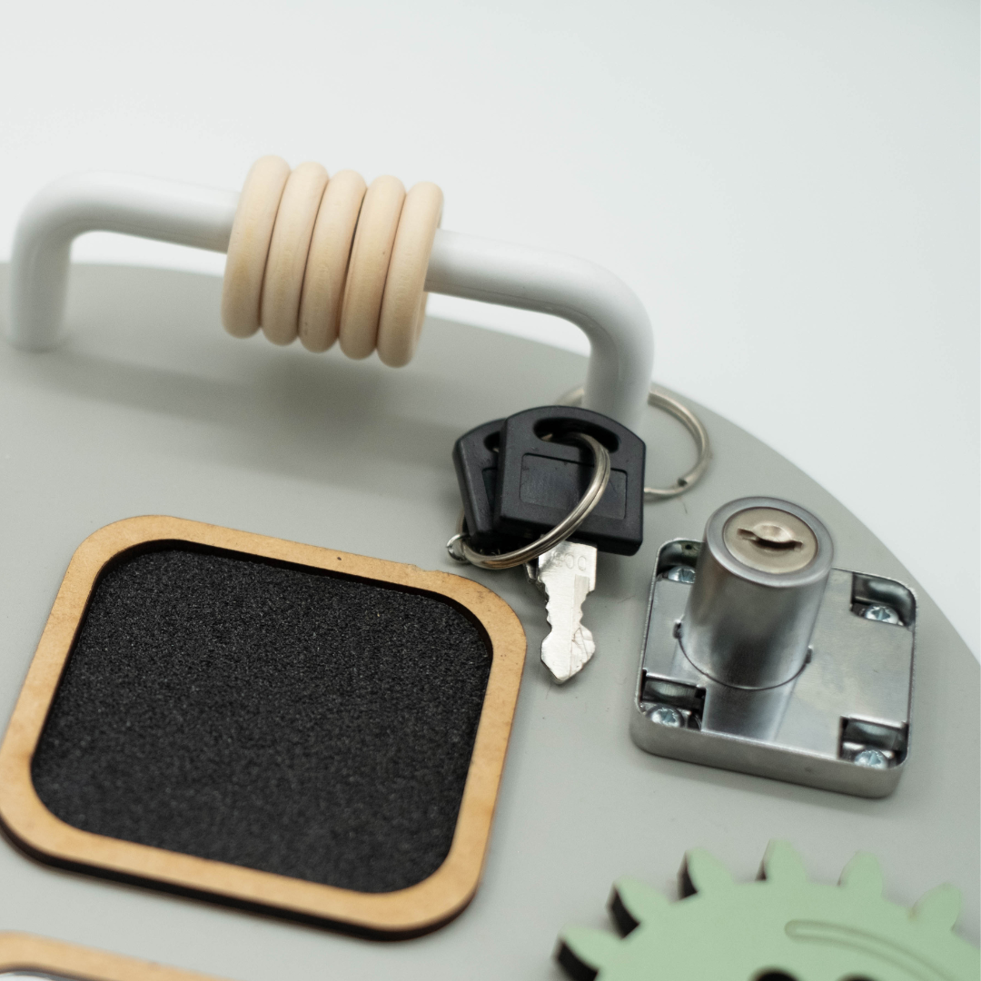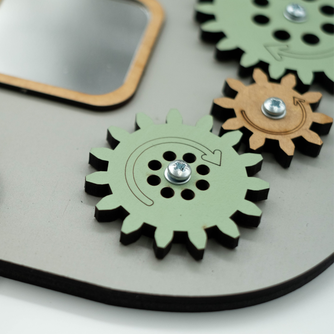 Perfect for independent play, this activity board helps children build fine motor skills, hand-eye coordination, and focus. Its hands-on, sensory-rich activities keep little ones engaged. Each interactive element – from spinning gears and sliding beads to touchable textures and simple manipulatives – is securely attached for safe play. Children can explore at their own pace while strengthening problem-solving and cognitive abilities.