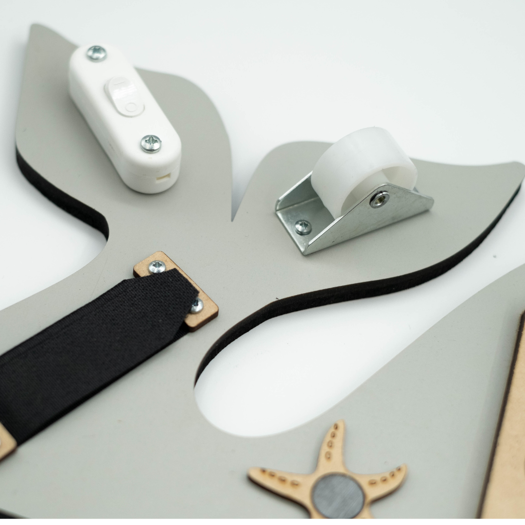 This Portable activity board is a beautifully handcrafted, Montessori-inspired toy designed to engage curious little hands and minds. This board turns any space – whether on a tabletop, lap, or floor – into an interactive learning corner. In addition, it encourages babies and toddlers to explore textures, motions, and sounds while developing essential early learning skills.